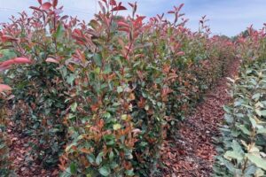 De Glansmispel Red Robin is een wintergroene en winterharde haagplant die felrood uitloopt in het voorjaar. Ook na elke snoeibeurt zal de Glansmispel Red Robin weer mooi rood uitlopen. De glanzende bladeren zijn 10-15cm groot. De Glansmispel Red Robin wordt door haar mooie rode kleur veel toegepast in tuinen waar al veel ‘groene’ planten staan. De Glansmispel Red Robin is zomer en winter groen waardoor u jaarrond privacy hebt.