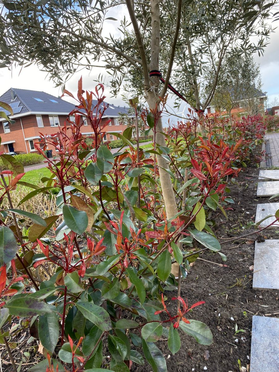 Het eerste jaar na aanplant van de Glansmispel Red Robin is het van belang om de vochttoestand in de bodem goed in de gaten te houden. De eerste 3 maanden na aanplant zijn cruciaal voor het aanslaan. De haag moet nieuwe wortels maken en kan nog maar beperkt water opnemen.